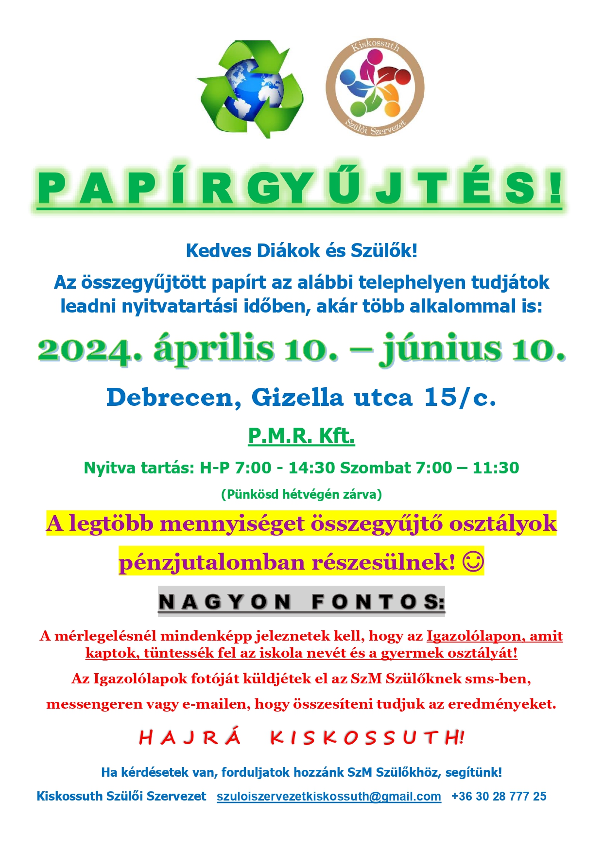 Ismét papírgyűjtés | Kossuth Lajos Gyakorló Gimnáziuma és Általános Iskolája Kossuth utcai feladatellátási hely