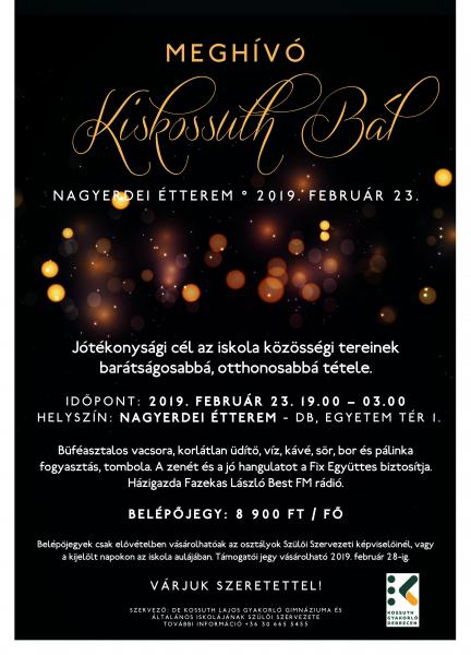 2019. 01. 17., cs – 21:45 A Debreceni Egyetem Kossuth Lajos Gyakorló Gimnáziuma és Általános Iskolájának kiskossuthos Szülői Munkaközössége bált szervez. Legutóbbi frissítés: 2022. 06. 09. 12:45